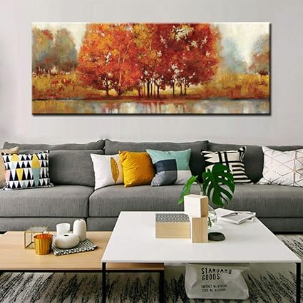 tzxdbh Moderne Abstrait Paysage Art Peinture à la Main Peint Impressions sur Toile Salon intérieur Maison décoration Murale Peinture à l'huile Ceinture Cadre 50X150cm: Amazon.fr: Cuisine & Maison