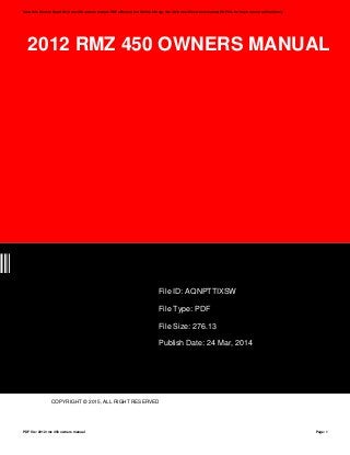 2012 Rmz 450 Owners Manual 2012 Rmz 450 Owners Manual